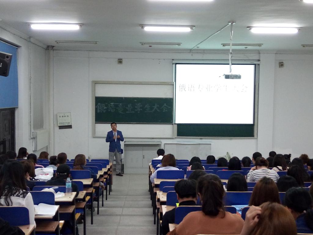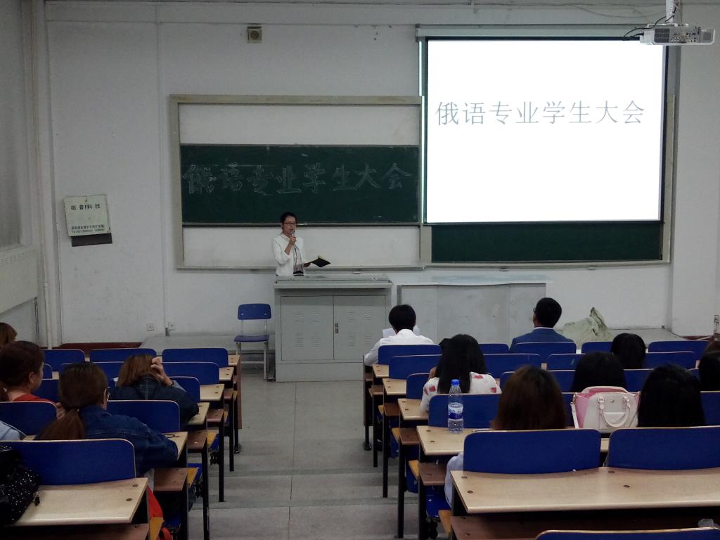 2016年9月26日,由俄语专业举办的第二届学生大会准时在综合楼101拉开帷幕。出席本次活动的领导有刘峰书记,辅导员严文颖老师,主席李玉邮。此外,2013级-2016级全体学生也参加了此次活动。