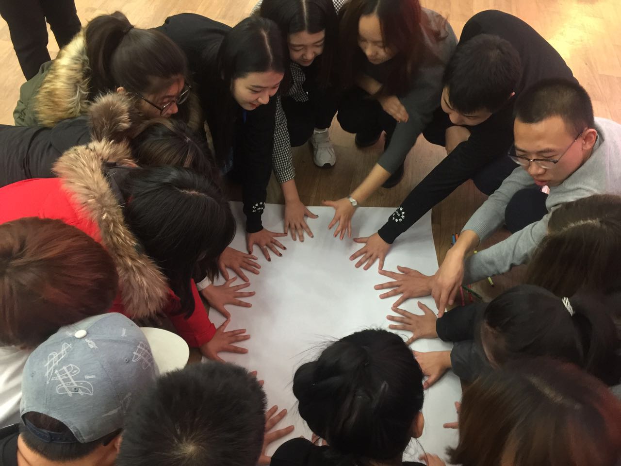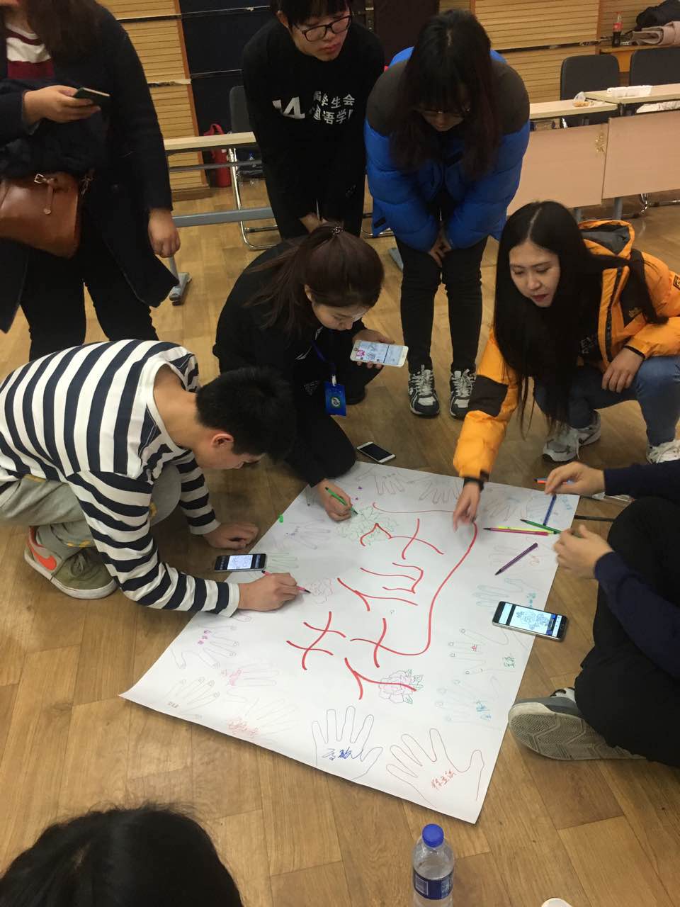 接下来,各学生会成员被随机分成六组,在游戏互动环节前大家利用了四十分钟的时间相互熟悉、沟通感情,每一组都绘制了代表自己队伍的海报,还起了队名、口号。随后的游戏环节共有三个游戏:吸管运输、手足嘴屁股、一反常态。经过三轮游戏,学生干部们增进了彼此之间的感情,更加明白了团结合作的重要性。游戏过后,老师及学生会成员前往二食堂二楼,准备午餐,集体包饺子。在报饺子过程中成员们欢声笑语,其乐融融,更加拉进了彼此的关系。最后,金老师对本次活动做了总结,并提出了几点期许。本次活动在融洽的气氛中圆满结束。
