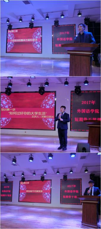 在二食堂三楼大学生活动中心举办了学生骨干短期培训活动。学院党委赵亮书记、学院郑鲜日院长、学院全永男副院长、学院崔雪波副院长、学院关心下一代工作委员会刘文主任、学院学生工作办公室主任兼团委书记金春宪老师、各专业书记、主任及辅导员老师出席本次培训。