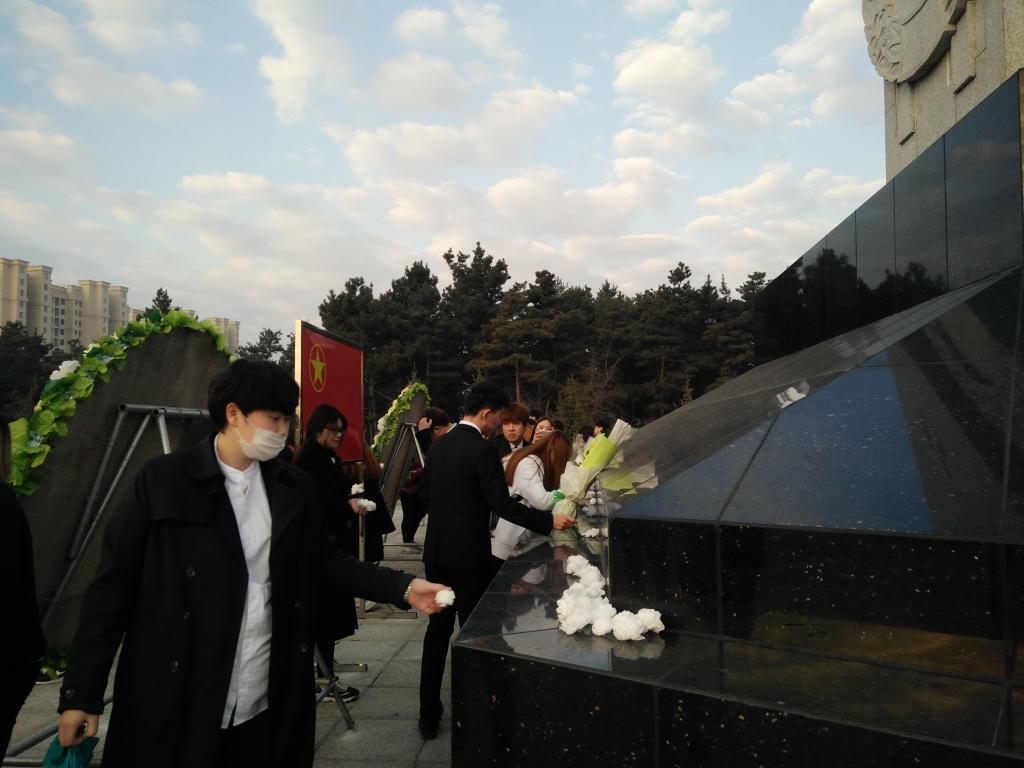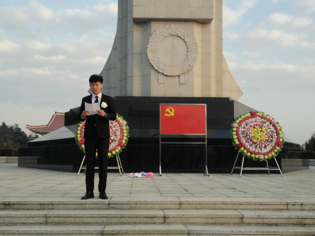 3月31日早上5点30分到达烈士陵园,在团委副书记单强的主持下扫墓活动正式开始。首先由两名同学向纪念碑敬献花圈,代表着新一代青年学生对烈士们的憧憬与尊重。然后全体成员默哀致敬表达对革命先烈的深切哀悼和无限的敬仰之情。随后大家纷纷敬献自己的小白花,并由元景明同学在纪念碑下发表演讲,歌颂伟大先烈们的光荣事迹让同学们深有感触,认识到自己身上肩负的历史重任。最后活动以团委书记金春宪老师的总结讲话宣告圆满结束。