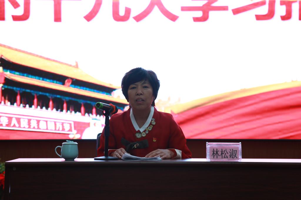 团委书记郭鲜丹主持,中国共产党第十九次全国代表大会代表林松淑同志受邀莅临我院做学习党的十九大精神主题宣讲。我院学工办主任及各专业辅导员出席本次报告会,党员、学生干部等参加了本次报告会。