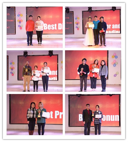 随着主持人开场与班级介绍视频的播放比赛正式拉开帷幕。本次话剧比赛以经典莎士比亚戏剧为主题,参赛班级从不同角度对精粹进行了精彩诠释,无不展示出自己的最佳水平。引人入胜的剧情,细致到位的表演,博得同学们的阵阵叫好,引来了现场观众的阵阵掌声。经过一番激烈角逐,2015级四语班的《第十二夜》荣获一等奖,2015级英语文学班的《威尼斯商人》和2015级英语教育班的《李尔王》荣获二等奖,2016级英语文学班的《仲夏夜之梦》、2016级英语教育班的《威尼斯商人》和2016级四语班的《罗密欧与朱丽叶》荣获三等奖。蔡琦同学荣获最佳男主角奖,李美贤同学荣获最佳女主角奖,玄春玉同学荣获最佳男配角奖,安吉华同学荣获最佳女配角奖,严莉娜同学荣获最佳语音面貌奖,金慧英同学荣获最佳导演奖。最后由外教Megan 和Sam从不同方面对本次比赛的参赛队伍进行了中肯的点评与总结。
