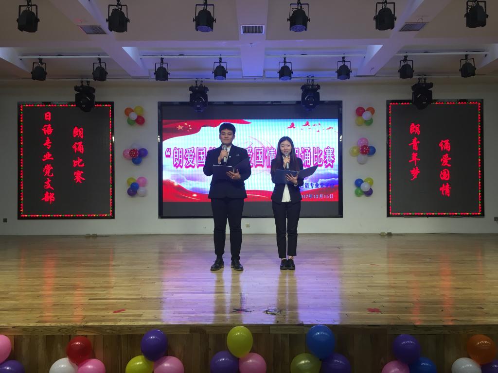 日语专业支部于2017年12月15日晚6:30,在二食堂三楼小剧场举办了以班级为单位的“朗青年梦,诵爱国情”朗诵比赛。搜同