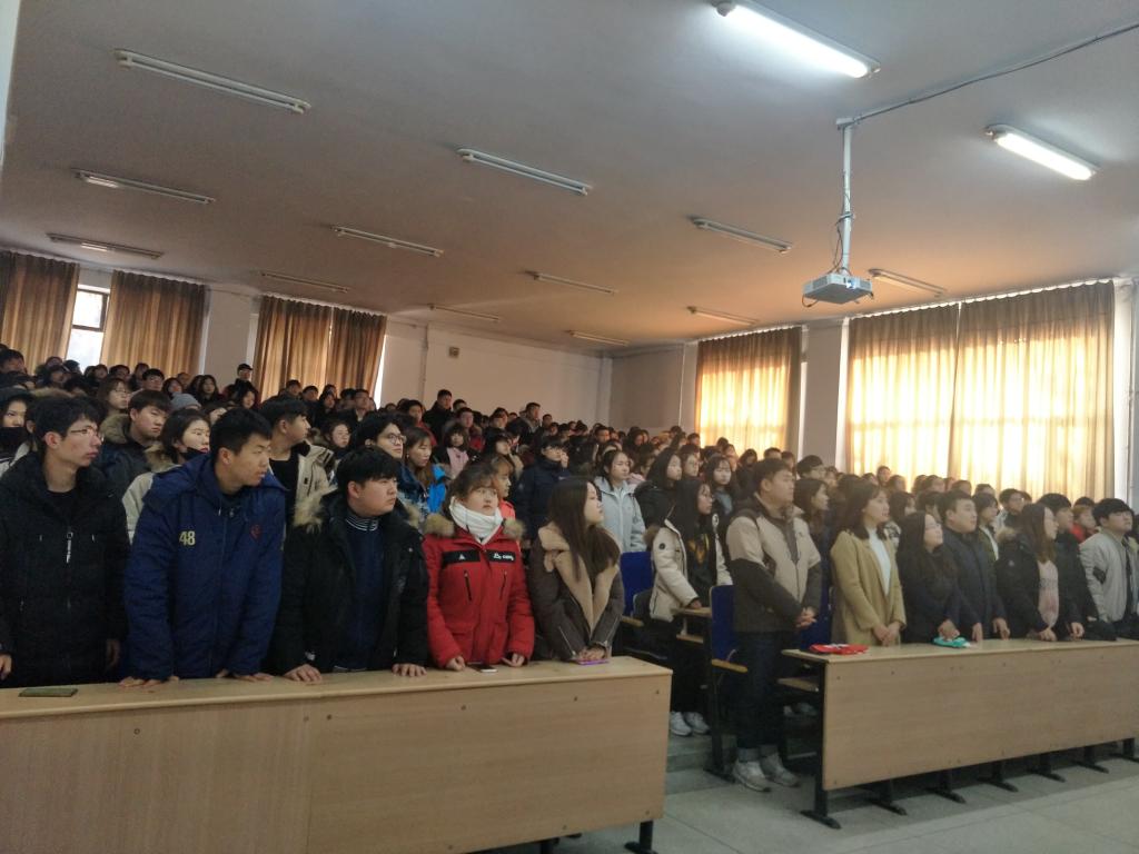 于2017年12月22中午11时30在综合楼101教室举办“秉实事求是,传优良学风”诚信考试动员大会。学院学生工作办公室主任兼英语专业辅导员金春宪老师,学院团委书记兼日语专业辅导员郭鲜丹老师,俄语专业辅导员周沫老师出席此次会议。2015、2016级班委、2017级全体参加本次大会。