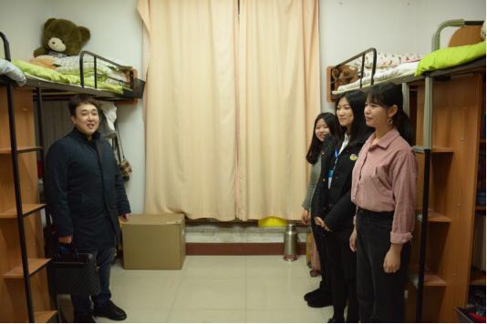 英语、日语及俄语三个专业辅导员老师在各专业学生会的陪同下走访了寝室,给同学们带来温暖的问候。