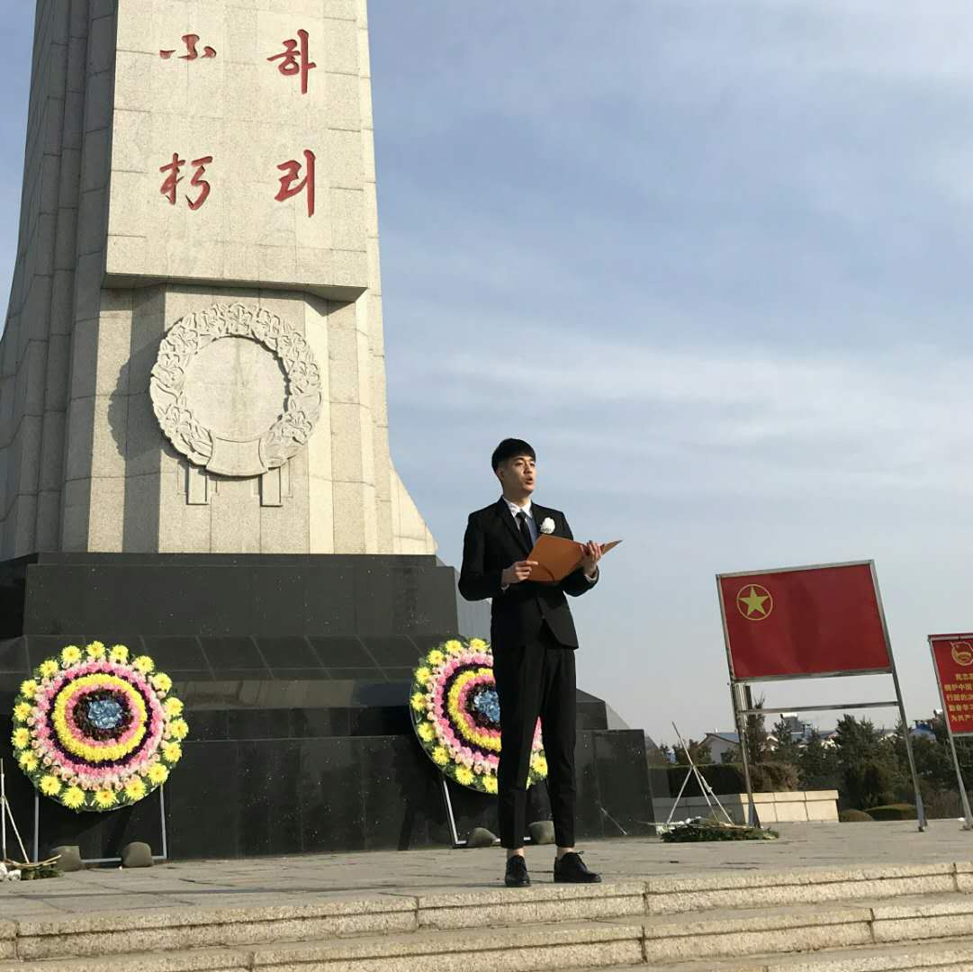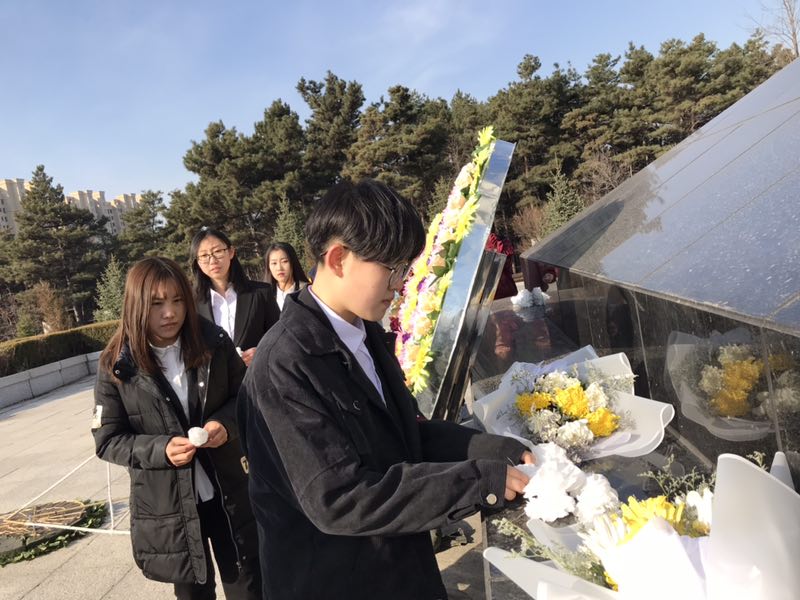 首先由两名学生代表向纪念碑献花,表达新一代青年对革命先烈的敬仰与尊重;然后在纪念碑前肃立,默哀一分钟,表达对革命先烈的深切哀思;随后由学生代表徐相霖同学在纪念碑下致辞,他表示是革命先烈们的流血牺牲,才换来了我们今天的幸福生活,我们作为时代的幸运儿,更应该懂得幸福生活来之不易,懂得所肩负的历史责任和历史使命。我们要爱自己,更要爱祖国,我们要发奋学习,为祖国母亲增光添彩,不负先烈遗志!活动最后,全体同学瞻仰纪念碑,并向革命先烈献上胸前的白花,以此纪念永垂不朽的烈士精神,寄托对革命先烈的哀思。