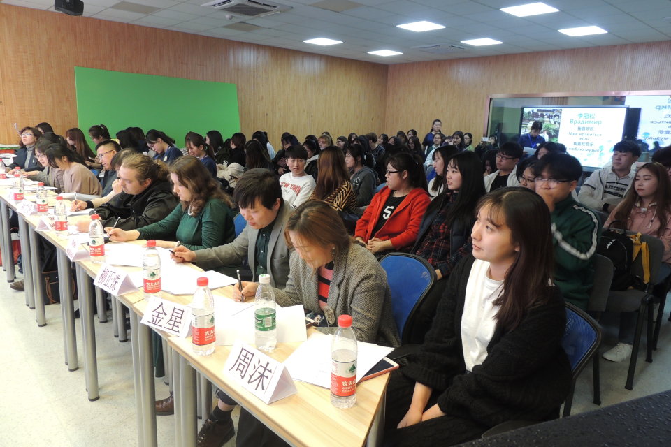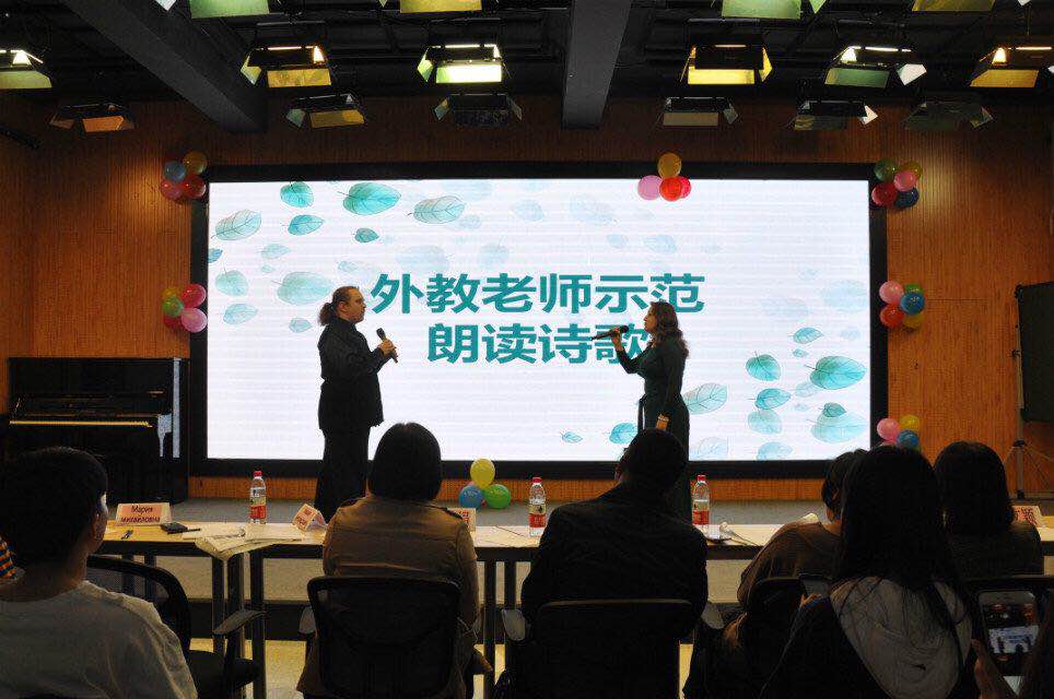 在颁奖仪式结束后,两位外教老师为同学们示范朗读了诗歌,现场响起了雷鸣般的掌声。最后由俄语专业书记刘锋书记为本次大赛做了总结,本次大赛成功地落下帷幕。