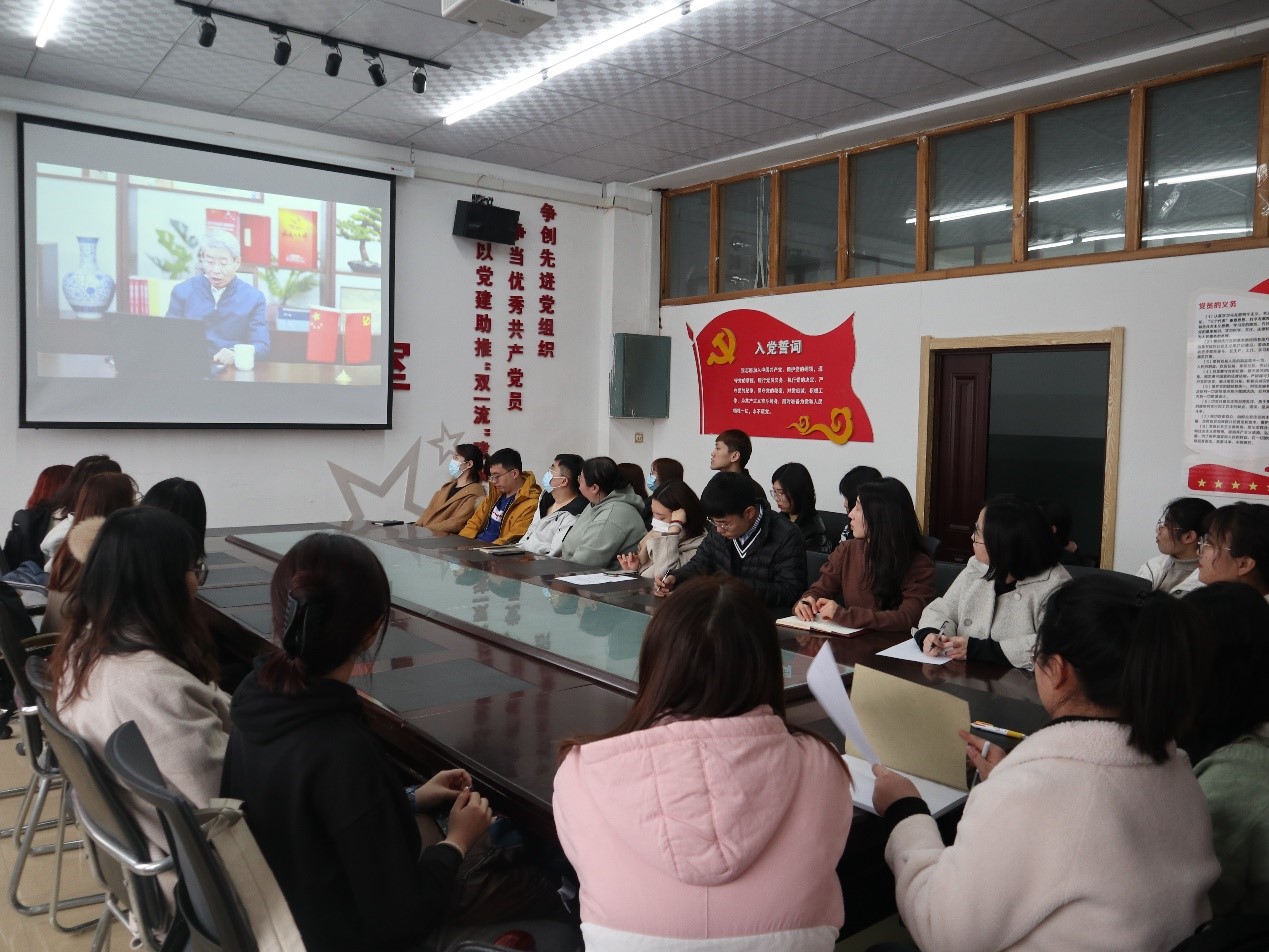 于2021年3月15日下午14:30在融合楼518教室组织学生党员观看了“学党史•筑信仰”全省高校思政课“开学第一课”。学院团委书记郭鲜丹、研究生辅导员金兰和各专业辅导员出席了本次会议。