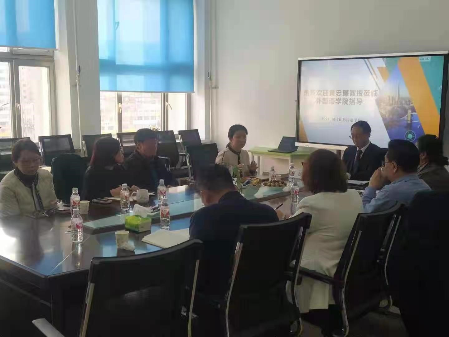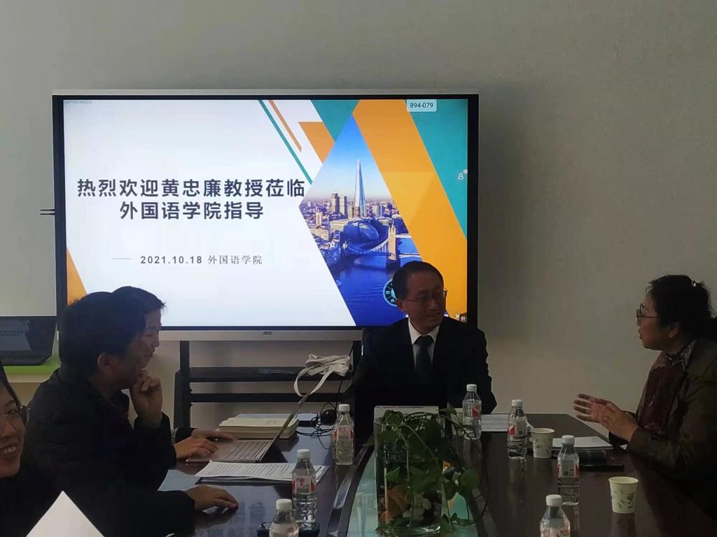 学科主任、拟建院属科研机构负责人及成员进行座谈。现场气氛活跃,在场人员踊跃提问,黄忠廉教授从自身实践经验出发一一解答,并对外语学科建设方向给予了宝贵的意见。
