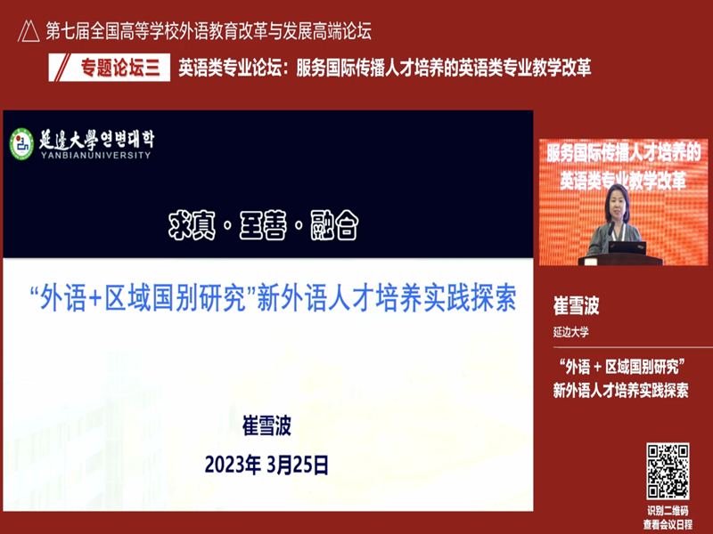 院长崔雪波应邀参会并在“英语类专业”专题论坛作了题为“ ‘外语+区域国别研究’ 新外语人才培养实践探索” 的专题报告。